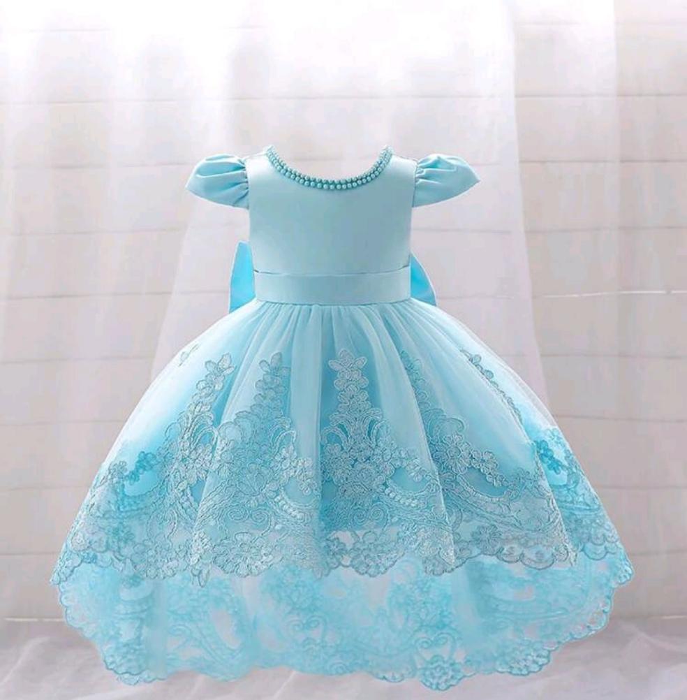 This darling dress is the perfect choice for your little girl's special event! The Fit and Flare silhouette features a sleeveless bodice, a contrast mesh hem, and a zipper-back closure. The bodice is adorned with delicate embroidery, beading, pearls, and a big bow to complete the look. Perfect for birthdays, formal events, and any other special events.