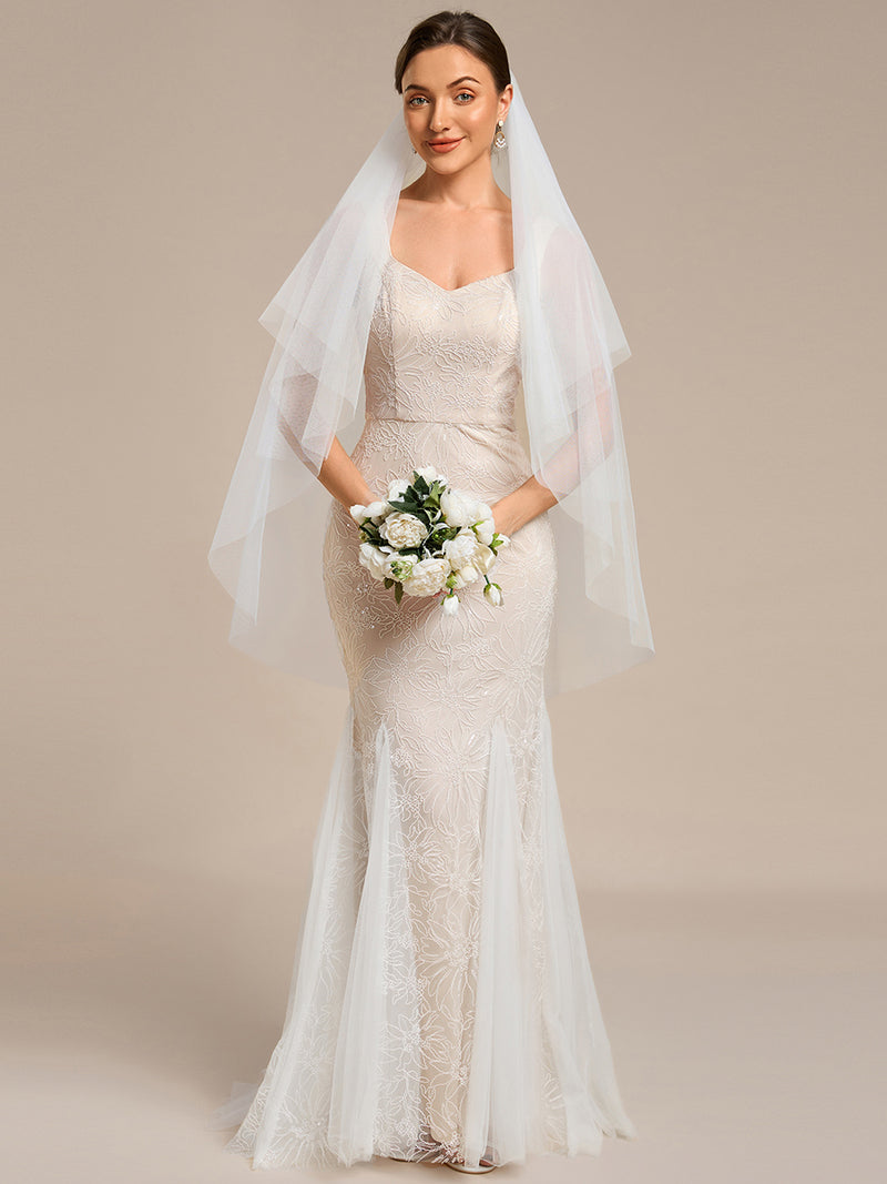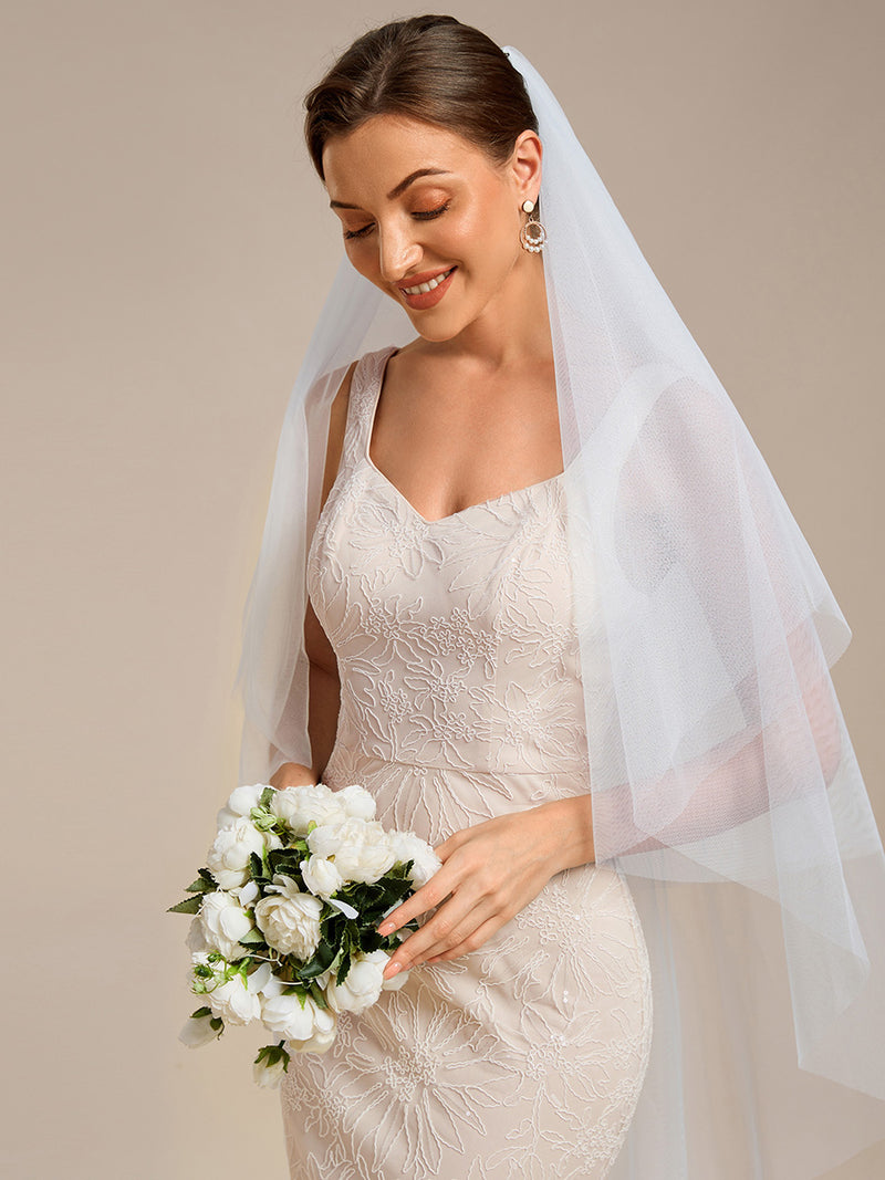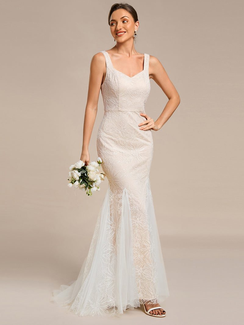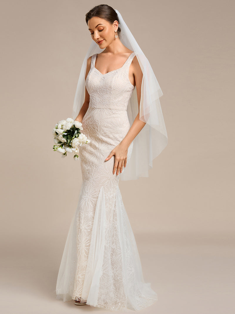 Square Neckline Sleeveless Bodycon Floor-Length Bridal Dress
